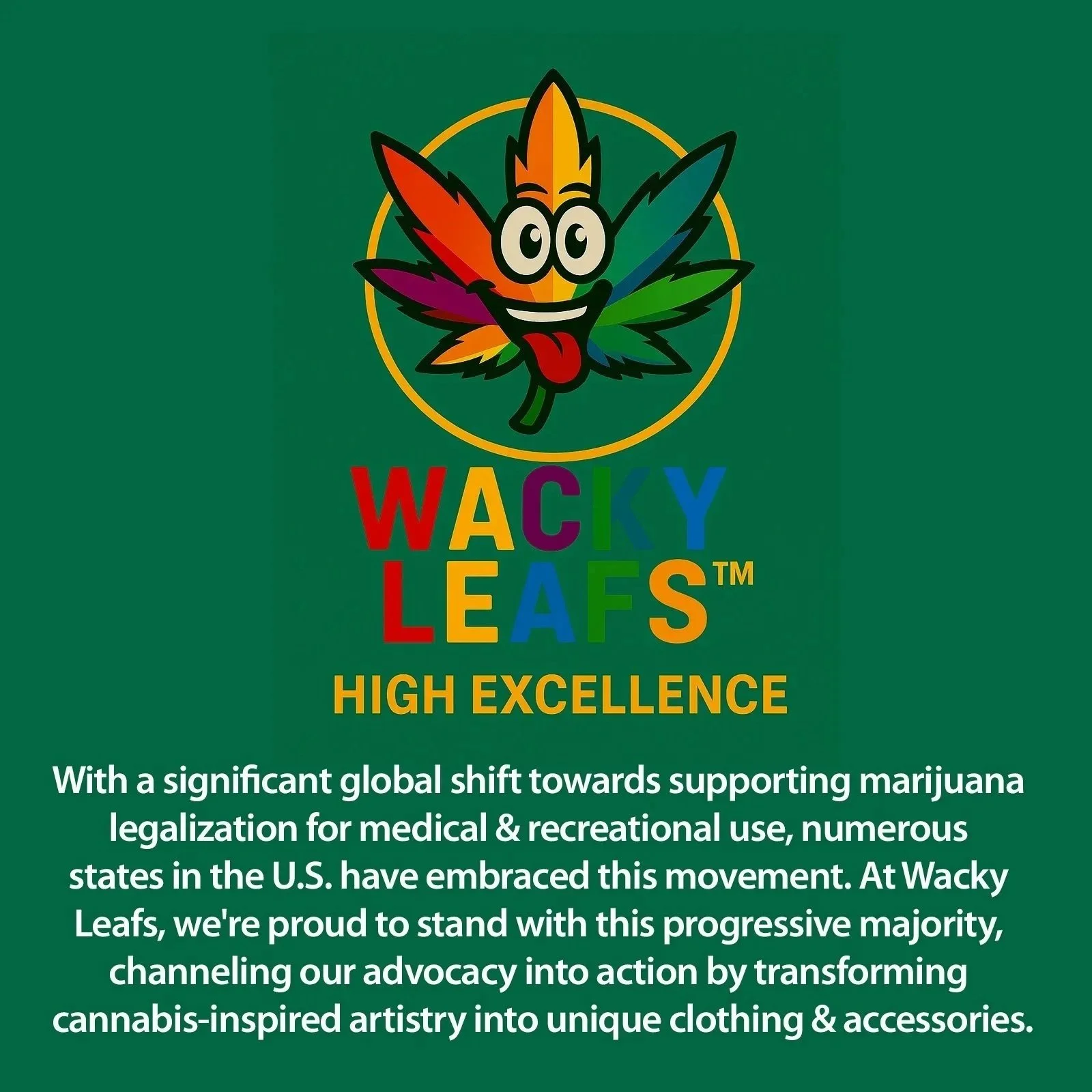 Welcome to a world where creativity meets functionality! Wacky Leafs, transforming cannabis-inspired artistry into unique clothing & accessories. Also, you can come here to find the latest episode(s) of the Wacky Leafs Channel which is your high‑energy hub for cannabis reviews, education, & culture. You can also put in orders for Wacky Leafs merchandise from T-Shirts to lighters, coloring books to stickers. Come join our Wacky community of High Excellence where we stand for legalization.